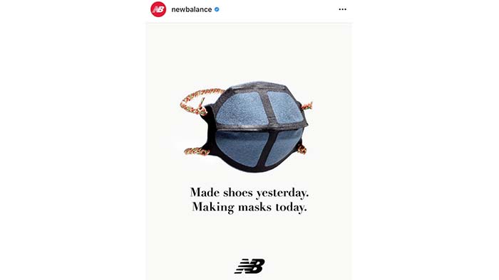 New Balance is turning over production in its Lawrence, Mass. manufacturing facility for the production of face masks. The company said it hopes to scale production using its other New England factories soon.