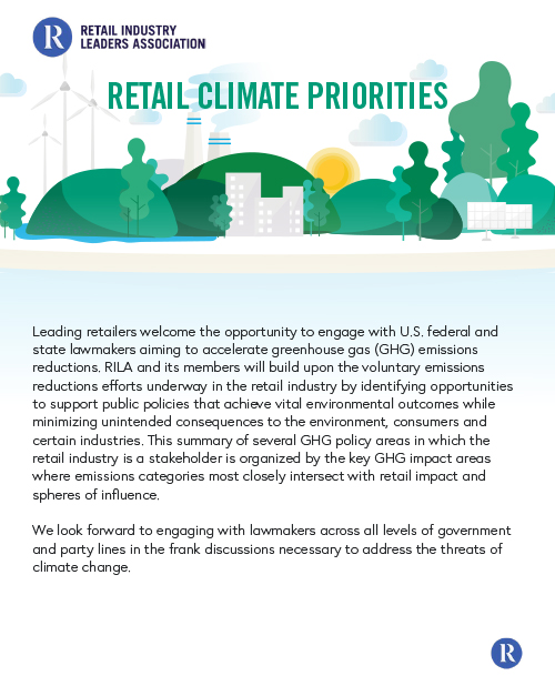 Responding to the economic and moral imperatives of addressing climate change requires thoughtful and meaningful action. Leading retailers understand the intricacies of navigating complex relationships and operational realities to pursue sustainability. The retail industry is an ally in the fight against climate change and stands ready to partner with policymakers and provide constructive insights as we work towards achievable goals.