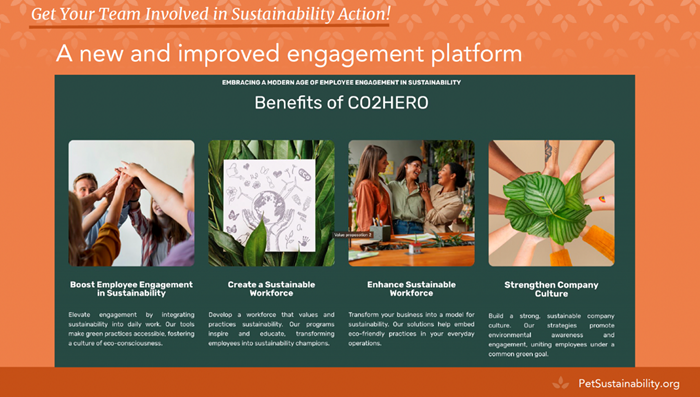 Petco is working with the Pet Sustainability Coalition and CO2Hero to provide the entire Petco team of 29,000 partners an opportunity to participate in a friendly Earth Month competition. The Pet Sustainability Coalition (PSC) is a non-profit dedicated to transforming the pet industry through sustainable change.